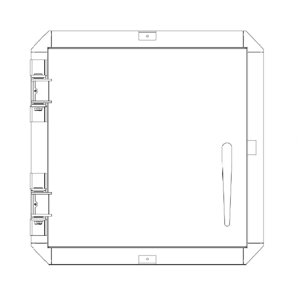 Cette trappe est conçue pour une pose verticale, en mur ou voile béton, avec ouverture battante.