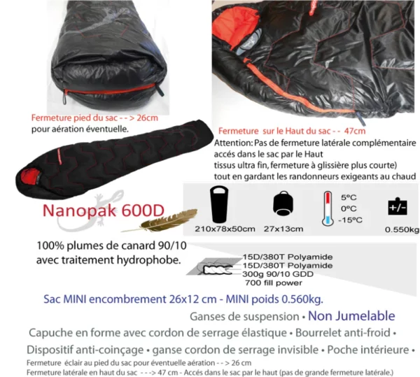 Sac de couchage de survie 600 g Nanopak 600D : ultra-léger, compact et d’exception